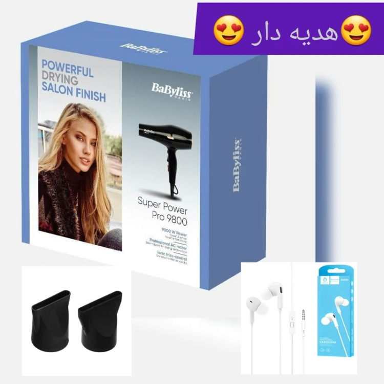 📌داری 18ماه گارانتی یک سشوار بخر و یک هندزفری هدیه بگیر 😍 ارسال سریع 🚄 سشوار بابلیس مدل BaByliss 9800 برند: بابلیس مدل تجاری : 9800 فناوری تولید یون : دارد توان : 9800 وات استفاده : سالنی و خانگی موتور : سنگین AC کنترل باد : 2 حالت کنترل حرارت : 3 حالت سری متمرکز کننده : دارد برای کسانی که موهایشان الکتریسیته ساکن دارد، به جای استفاده از سشوارهای UV (فرابنفش)، استفاده از سرمها و اسپریهای مخصوص ضد زبری مو توصیه میشود.