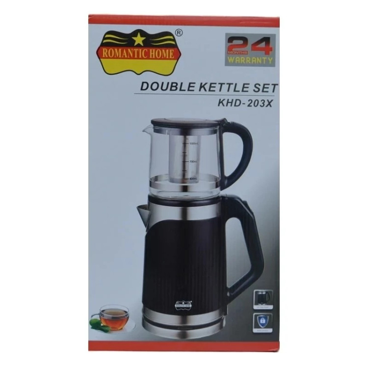 این چایساز رومانتیک هوم مدل 203 بسیار زیبا و قشنگ هست و زیبای خاصی را به آشپزخانه و یا محل کار میدهد. جنس بدنه از نوع شیشه سکوریت مرغوب و با دوام در برابر حرارت هست. توان مصرفی این محصول 2000 وات بوده و طول سیم 1 متری برخوردار هست. حجم کتری 2 لیتری و حجم چای ساز 1 لیتری بوده و با آن میتوان خیلی سریع یک چای گرم و یا کافه تهیه نمود. همچنین دارای آپشن کلید اتوماتیک بوده که پس از گرم شدن اتومات میکند و دیگر نگرانی بابت گرم شدن بیش از حد دستگاه ندارید. دارای دستگیره عایق شده در برابر حرارت که میتوان به راحتی آن را از روی صحفه برداشت و همچنین دارای شستشوی آسان هست.