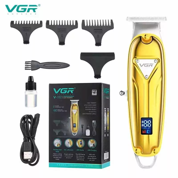 توضیحات قیمت ماشین اصلاح حرفهای VGR V-062 تکنولوژی اصلاح: برش مستقیم جنس تیغهها: تیتانیوم نوع: خط زن مناسب صفر زنی منبع انرژی: باتری قابل شارژ مدت زمان شارژ کامل: 2 ساعت مدت زمان کارکرد: 180 دقیقه صفحه نمایش: LED
