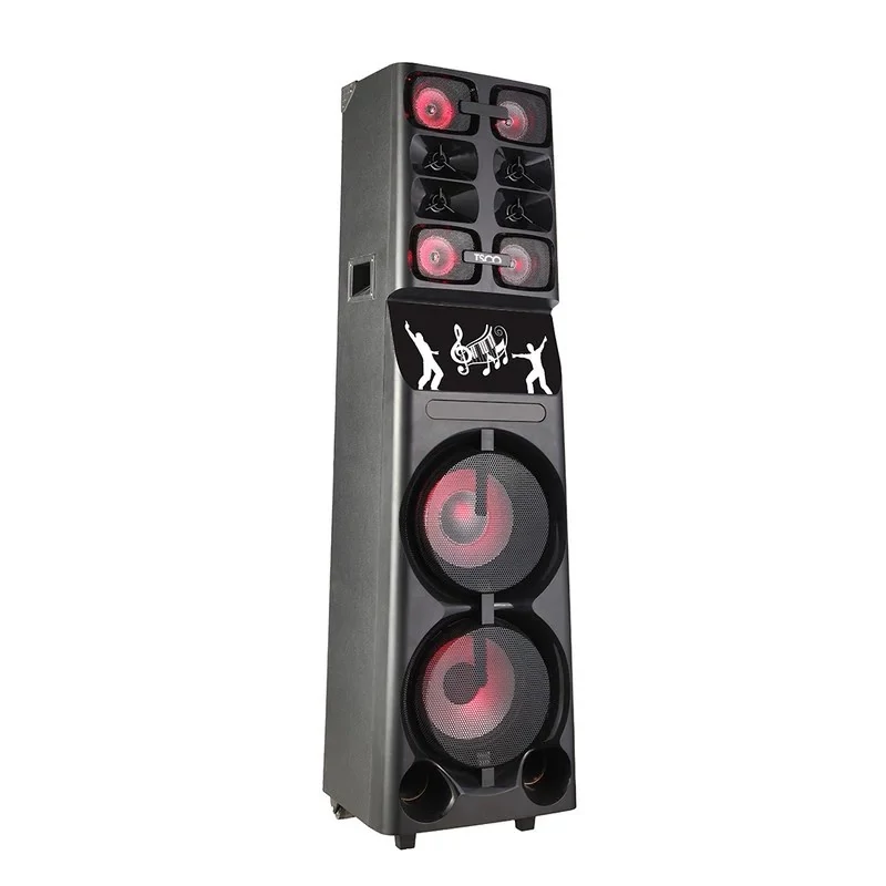 پخش کننده خانگی تسکو مدل TS 2096 یکی از لوازم خانگی که برای برگزاری محافل و جشنها برای هر خانهای ضروریست اسپیکر پرقدرت است. با اسپیکرهای تسکو مدل TS 2096 علاوه بر یک اسپیکر قدرتمند و باکیفیت از طراحی زیبای آن نیز میتوانید لذت ببرید. با قابلیت کارائوکه در این اسپیکر با دوستان خود لحظات زیبا و خاطرهانگیزی را رقم بزنید. ابعاد این اسپیکر تسکو مناسب جا به جایی و قرارگیری در فضاهای مختلف است. این اسپیکر جذاب تسکو دارای قابلیت TWS است که برای اتصال دو بلندگو به هم به کار میرود. اسپیکرها از نوع Tower بوده و با ظاهر بسیار زیبا برای جلوه دادن به فضای شما بسیار جذاب است. با اتصال این دو اسپیکر به هم امکان پخش موسیقی فراهم میشود. در ادامه با مدل TS 2096 بیشتر آشنا خواهیم شد. دو اسپیکر با ابعاد 303×304×1303 میلیمتر مناسب قرارگیری در مجالس و فضای باغ است. یک عدد درگاه USB روی این اسپیکر قرار گرفته که برای پخش موسیقی از طریق فلش به کار میآید. روی بلندگوهای چوبی TS 2096 مجموعاً 4 عدد ساب ووفر 10 اینچی قرار دارد که با نورپردازی RGB در تاریکی جلوه زیادی به مجالس شما میبخشد. جنس این ساب ووفرها کربنی بوده و وزن آنها به صورت خالص برابر 22.95 کیلوگرم و به صورت کلی 23.95 کیلوگرم است. ساب ووفرهای این دو بلندگو به ابعاد 10 اینچ صدا را با کیفیت فوقالعادهای خارج میکنند. پخش کننده خانگی تسکو مدل TS 2096 با نورپردازی RGB و طراحی زیبا مورد علاقه اکثر سلایق قرار میگیرد. دو پورت ورودی برای میکروفون این دستگاه در نظر گرفته شده است. ظاهر این اسپیکر با رقص نور موزیکال جلوه بسیار خاصی به خود میگیرد. از آنجایی که این اسپیکر دارای دارای چرخ جهت حمل و جا به جایی است حرکت دادن آن بسیار راحت است. در صورتی که تابه حال از این محصول بی نظیر تسکو استفاده کرده ای حتما تجربه خود را در کامنت ها بنویسید تا سایر کاربران هم بتوانند از تجربیات شما استفاده کنند .
