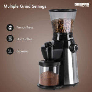 دستگاه آسیاب Geepas مدل GCG41013 برای استفاده آسان و قابلیت تمیز کردن آسان طراحی شده است تا فرآیند آسیاب را سریع و آسان کند. قطعاتی که با ذرات قهوه در تماسند به راحتی قابل جدا شدن جهت تمیزکاری هستند. سیستم آسیاب پیشرفته آن از گرم شدن بیش از حد ذرات قهوه جلوگیری می کند، عطر را حفظ می کند و دارای درجه بندی جهت آسیاب با اندازه های متغیر است. دانههای کامل قهوه را در عرض چند ثانیه برای دم آوری با کیفیت در منزل با کافه با استفاده از فرنچ پرس، دستگاه پرکولاتور قهوه یا سایر دستگاههای قهوه ساز و اسپرسو ساز آسیاب میکند.