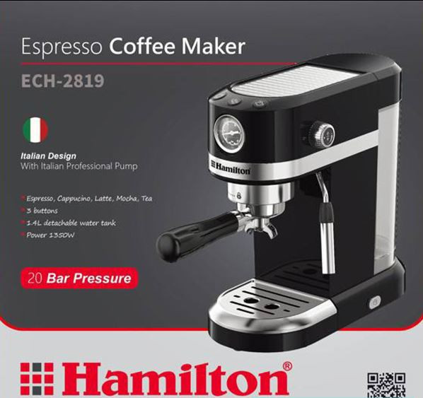 یک فنجان قهوه ی دلپذیر می تواند خستگی یک روز کاری سخت را به راحتی از تن شما بیرون کند. این روز ها قهوه ساز ها از جمله وسایلی هستند که در اکثریت خانه ها یافت می شوند و مردم با آنها خو گرفته اند. همیلتون یکی از برند هایی است که نظر بسیاری از مردم را به خود جلب کرده و با ساخت تعداد کثیری از کالاهای خانگی جایگاه خاصی در دل مردم دارد. این محصول طراحی کشور ایتالیا بوده و توانایی آماده سازی اسپرسو, کاپوچینو, لاته, موکا, چای و آبجوش را داراست. کار با این دستگاه با داشتن تنها 3 دکمه برای کنترل عملکرد آن بسیار آسان بوده و هر کسی به راحتی می تواند با قهوه ساز همیلتون ECH 2819 مورد دلخواه خود را آماده نماید.