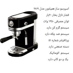 یک فنجان قهوه ی دلپذیر می تواند خستگی یک روز کاری سخت را به راحتی از تن شما بیرون کند. این روز ها قهوه ساز ها از جمله وسایلی هستند که در اکثریت خانه ها یافت می شوند و مردم با آنها خو گرفته اند. همیلتون یکی از برند هایی است که نظر بسیاری از مردم را به خود جلب کرده و با ساخت تعداد کثیری از کالاهای خانگی جایگاه خاصی در دل مردم دارد. این محصول طراحی کشور ایتالیا بوده و توانایی آماده سازی اسپرسو, کاپوچینو, لاته, موکا, چای و آبجوش را داراست. کار با این دستگاه با داشتن تنها 3 دکمه برای کنترل عملکرد آن بسیار آسان بوده و هر کسی به راحتی می تواند با قهوه ساز همیلتون ECH 2819 مورد دلخواه خود را آماده نماید.