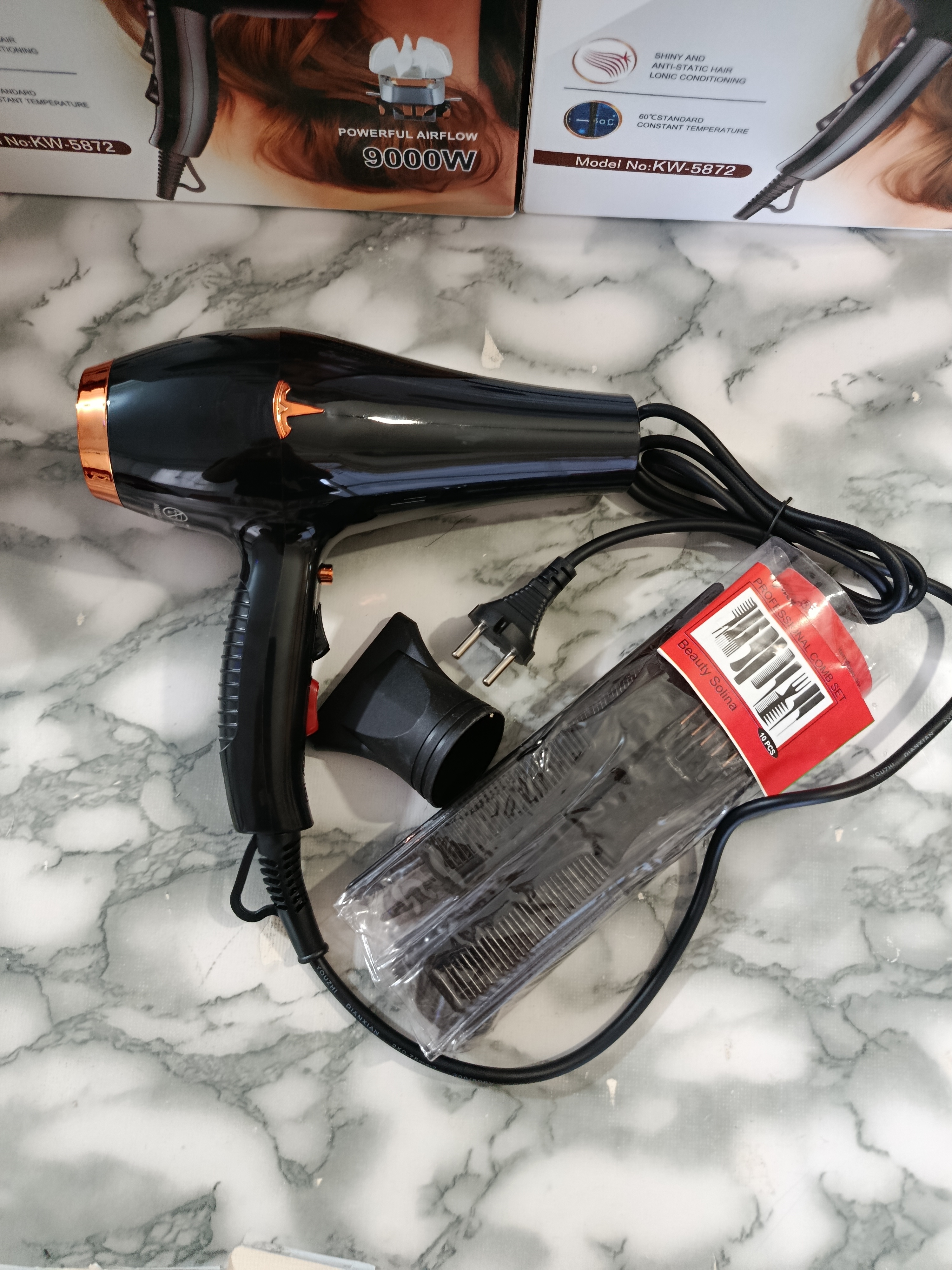 ⚠️داری 12ماه گارانتی به همراه فاکتور و مهر فروشگاه ❌️ارسال فوری 🚄 ✅️-قدرت 9000 وات ✅️-دارای دکمه سرد کن سریع ✅️-سرعت دو حالته کند و تند ✅️-دمای سه حالته سرد، گرم و داغ ✅️-به همراه یک سری متمرکز کننده باد ✅️-کاربرد سالنی و خانگی