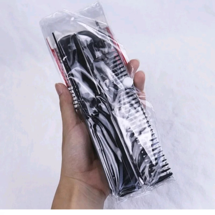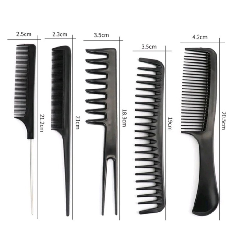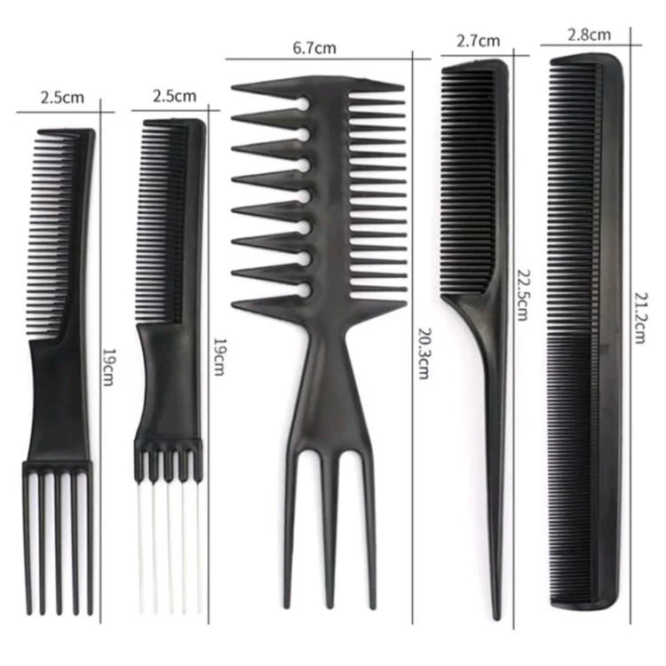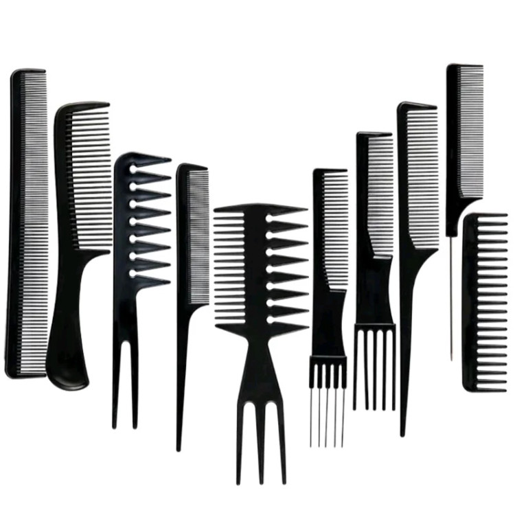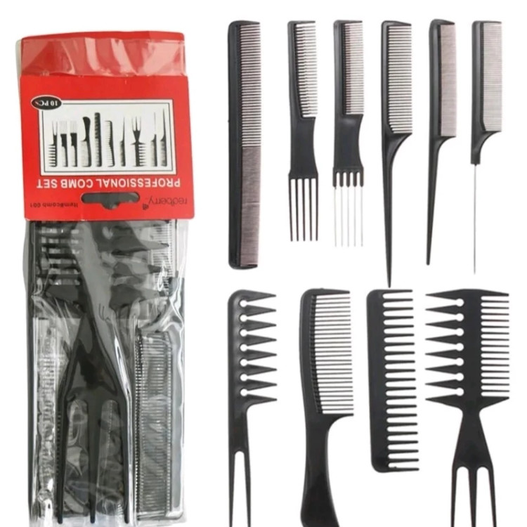 پک شانه آرایشگاهی 10 عددی از جنس کربن با کیفیت قابلیت نگهداری از دسته های زیاد مو شانه پوش، شانه تقسیم، شانه دم فلزی و … فوق العاده سبک و با کیفیت مقاومت زیاد به فشار و حرارت 10 عدد شانه کاربردی برای هر نوع نیاز در آرایش مو 1-شانه موهای فر دندانه درشت 18*4 2 سانتی متر شانه پوش دم فلزی 19*3 3 سانتی متر شانه پوش دم پلاستیکی 19*3 4 سانتی متر شانه معمولی دسته پهن 20*4.5 5 سانتی متر شانه بلند باریک دو دندانه 21.5*3 6 سانتی متر شانه معمولی دندانه درشت موهای فر 17.5*4 7 سانتی متر شانه دندانه ریز دم دار پلاستیکی 22*2.5 8 سانتی متر شانه دوطرفه دم دار پوش 21*7.5 9 سانتی متر شانه دندانه ریز دم دار فلزی 20*2.5 10 سانتی متر شانه پوش دندانه متوسط دمدار پلاستیکی 22*3 سانتی متر