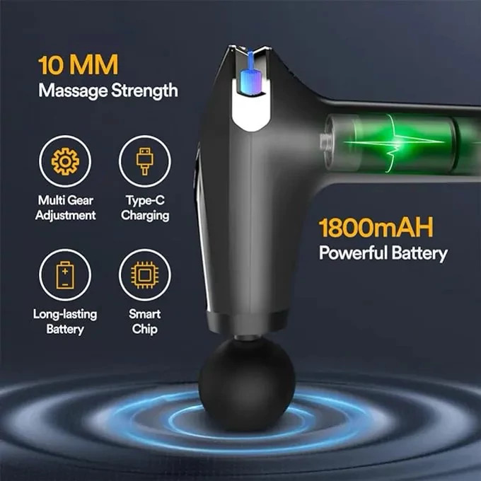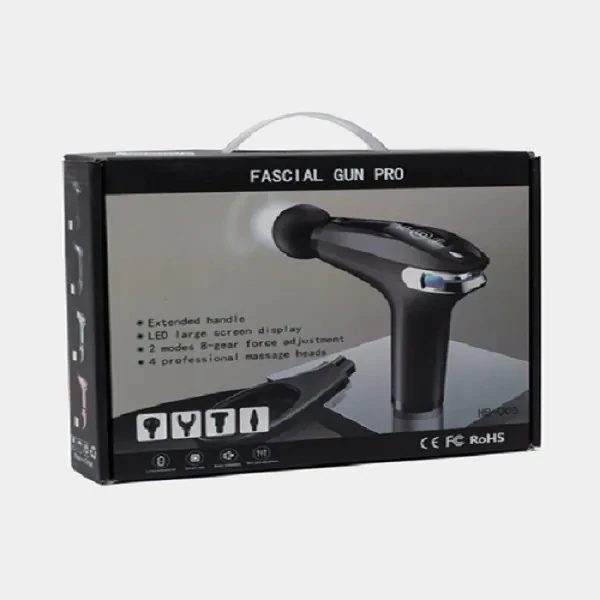 منبع انرژی شارژی تعداد سری ها چهار عدد توان مصرفی 30 وات امکانات ابزار دسته ارگونومیک نوع ماساژ ضربهای وزن 600 گرم سایر توضیحات ماساژورتفنگی fascial gun pro دارای 4سری است که عبارتند از : U_shape head /ball head/wolf tooth head/conical head سریU_shape ماساژور تفنگی fascial gun pro مدلHB_005: این سری یو شکل مدل HB-005 برای ماساژ گردن و تاندون و آشیل ستون فقرات مناسب است.سری wolf tooth headماساژور تفنگی fascial gun pro مدلHB_005: این سری دندان گرگی ماساژور تفنگی fascial gun proبرای ماساژ پاها،باسن و سایر تحریکات عمیق عضلانی بزرگ مناسب است.سری ball shapeماساژور تفنگی fascial gun pro مدلHB_005: این سری ماساژور تفنگی مدل HB-005برای ماساژ قسمت های مختلف عضلانی مانند کف دست و پا و غیره مناسب است.سری conicalماساژور تفنگی fascial gun pro مدلHB_005: این سری مدل HB-005 برای ضربه به بافت های عمیق نقاط طب سوزنی کاشت مانند مریدیون ها و مفاصل مناسب است.موارد استفاده از ماساژور تفنگی fascial gun pro مدل HB_005: – درد و اسپاسم ناشی از کوفتگی عضلانی، رگ به رگ شدن و کشیدگی عضلات – کمک به جریان خون در ناحیه متورم – در مواردی که بافت همبند از بین رفته اند – کاهش تجمع لاکتیک اسید در عضلات – افزایش دامنه حرکت مفاصل -رفع خستگی عضلات دارای قابلیت1800تا 3200 ضربه در دقیقه دارای کابل شارژ تایپ C منبع تغذیه باتری قابل شارژ نوع ماساژ ضربه ای و لرزشی دارای صحفه نمایش LCD پورت شارژ دارای باتری 1800میلی آمپری حاوی چهار عدد سری دارای 8 سرعت قابل تنظیم دارای نمایشگر میزان شارژ دارای تایمر 15 دقیقه ای دارای دسته ای با قابلیت اتصال و جداسازی دارای دکمه خاموش و روشن و تنظیم سرعت دارای چراغی با هفت رنگ